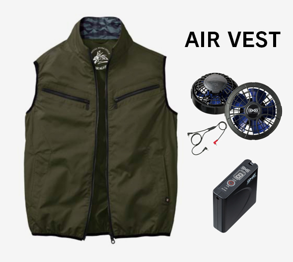 酷暑を乗り越えるため、現場作業服(高性能エアベスト:8時間耐久)全員支給。